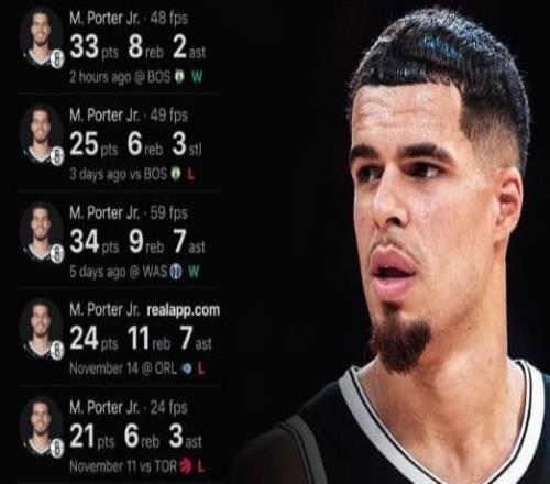 其实本赛季开始前,篮网队的阵容就不被人看好,选秀大会上拿下5个年轻人,穆迪就是冲着培养新人去的。此外,最大的看点可能就是小波特在篮网这样的球队能不能展现强大的得分能力。赛季初有人预测,小波特本赛季在篮网队场均肯定是有20+的,但效率可能差一些。毕竟篮网队没有约基奇的牵制,自然也没有那样掘金队的出手空间。而小波特,又不是一个擅长持球创造投篮机会的球员。篮网队新赛季的战绩确实不怎么样,但小波特的表现,确实是让人眼前一亮,而且效率不错。算上今天这场,小波特新赛季的场均得分来到了24.9分,接近25分的数据,在NBA中已经是准一线得分手了。