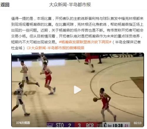 美国媒体人认为开拓者对杨瀚森很有耐心,但中国球迷明显没耐心。